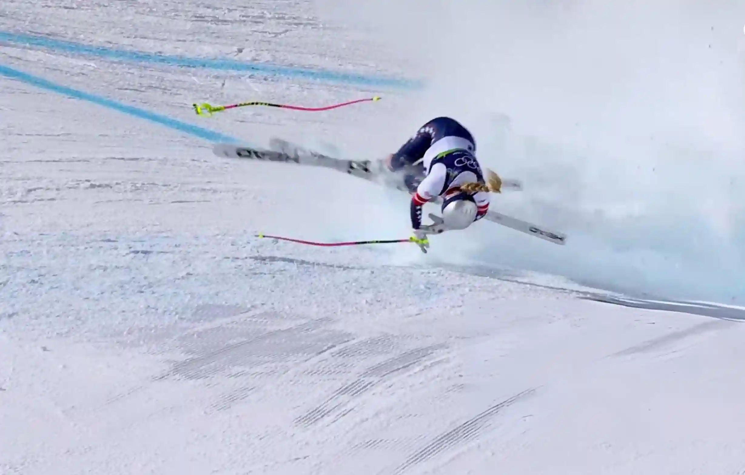 The American skier lost control at high speed during her run and slid into the safety barriers before coming to a stop on the slope. Medical staff responded immediately, stabilising her on the course before a helicopter transported her to a nearby medical facility for further evaluation.